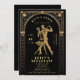 Una gran diversión espera con esta elegante invitación de cumpleaños con un tema de los años 20, con un marco decorativo y la silueta de un flapper bailando con su pareja. Una plantilla de invitación perfecta para una fiesta de cumpleaños para un tema de Gran Gatsby, en oro y negro. Ya sea para una fiesta de cumpleaños 40, 50, 60, 70 u 80, o para una centésima, este vintage marco art deco nouveau con temática de Relieve metalizado de oro negro (efecto digital) brillará brillantemente. Una ruidosa fiesta temática de los años 20 para una muñeca de cualquier edad.