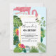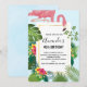 Invitación Flamenco Rosa Elegante y Hojas Tropicales Cumpleañ
