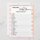 Suave, acuarela, coral de melocotón y fondo de rayas blancas. Lindo, rosa, flamingo en medio del guión "Baby Shower". Plantilla creada sólo para usted en este juego de bebé Word Scramble con todas las palabras relacionadas con los bebés están revueltas para que sus invitados traten de desarmarlos. *Una hoja de claves de respuesta está disponible bajo petición. Sólo comente conmigo, y puedo enviarte una copia por correo electrónico.*