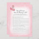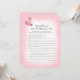 Disfruta jugando este juego de ducha de bebé ¿Quién sabe mejor mamá? con un suave fondo rosa con adorables triángulos dorados. Una bailarina flamingo querida, mamá y un bebé en la esquina inferior izquierda con flores rosadas de rosa en la cabeza y al lado de los cuerpos. Plantillas proporcionadas en la parte posterior.