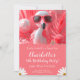 ¡Tira un fabuloso bash con la temática flamingo con esta adorable invitación de cumpleaños! Con un elegante flamingo bajo las gafas de sol y un vibrante telón de fondo rosado, este diseño de personalizable es perfecto para un fiesta divertido y tropical para niños. Añade tus detalles para crear una celebración memorable llena de risas y alegría.