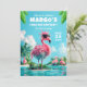 Sumérjase en una escapada tropical con este deslumbrante diseño fiesta flamingo de playa, con un elegante flamingo con gafas de sol junto a un grupo de flamencos rosas en una tranquila playa. Perfecto para cualquier celebración especial para niños, esta pieza de personalizable le aporta un ambiente vibrante y festivo al fiesta. Con su encanto tropical audaz, es ideal para un bash inolvidable. Incluye espacio para los detalles del evento y la información de RSVP. Personalízalo para crear un conservador impresionante para tu pequeño e invitados.
