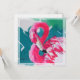 Pintura original de seda de un flamingo. Estilo Impresionista con colores vivos de rosa y verde azulado. Encantador para muchas ocasiones.