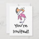 Invitación flamingo rosa gracioso con pie en la boca
