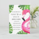 acuarela de Flamingo, Hawaii, invitaciones tropicales. Invitaciones elegantes, hermosas, a una ducha de novia. Flamingo de acuarela pintado a mano solo. Personalízalo con tus detalles.