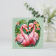 Envía un serio amor de verano con esta tarjeta de felicitación de flamencos tropicales, que presenta dos flamencos rosados elegantes formando un corazón con sus cuellos, rodeados de vibrantes flores de hibisco y exuberante vegetación en un diseño audaz inspirado en camisas hawaianas de los años 50.