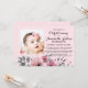 Una elegante invitación de bautizo que puedes personalizar y enviar a tus invitados para celebrar tu evento de bautizo. Todo el texto está configurado con tipografía popular. Un patrón floral complementa el diseño en tonos de rosa y gris sobre un fondo rosa suave. ¡Disfruta!