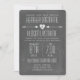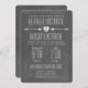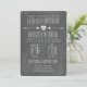 Invitación nupcial con un ilustracion de corazón entre dos flechas. El texto es blanco. El fondo está inspirado en la pizarra.