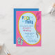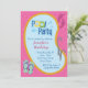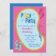 Esta invitación de cumpleaños de fiesta de grupo incluye una tarjeta de colores vivos con campos de texto de personalizable.