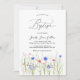 Una invitación al bautismo de bonito con un prado de flores silvestres de múltiples colores y un hermoso guión floreciente para traer un toque de naturaleza a la ceremonia. Adecuado para el niño, chica o ambos.