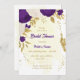 Románticas flores reales moradas y blancas con hojas de oro invitación a la ducha de novia botánica Los detalles del purpurina se simulan. Es ideal tanto para duchas de novias como para invitaciones a duchas de bebé.