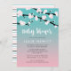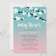 Invitación primavera-temática linda de la fiesta de bienvenida al bebé que ofrece unas par de ramas del cerezo por completo de flores contra un rosa y un fondo del ombre de la turquesa.