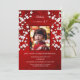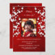 Flores de cerezo blanco y la foto de tu hija en un fondo rojo brillante. Con un texto personalizado con una letra elegante para fiestas de cumpleaños de chicas.