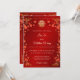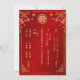 Ramas de flores de cerezo rojas, un marco chino dorado y un símbolo de doble felicidad dorado sobre un fondo rojo. Con un texto tradicional chino en el reverso.