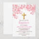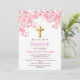 Invitación Flor de Cerezo Rosa Cruz Floral Niña Bautizo