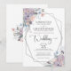 Hermosa invitación de boda de primavera o verano con ramos florales boho de flores silvestres en acuarela pastel en tonos de púrpura, violeta, lila, lavanda, azul polvoriento, melocotón, rosa sonrosado y verde salvia y acentuados con tipografía de escritura en gris carbón y un marco geométrico de gris plateado. Contacte al diseñador ANTES DE COMPRAR a través de Zazzle Chat o makeitaboutyoustore@gmail.com para modificaciones de diseño, asistencia para personalizar o transferir el diseño a otro producto o para obtener artículos coordinados.