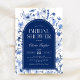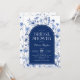 Invitación a la ducha de novia con flores silvestres en azul marino y blanco. Bonito diseño elegante con acentos botánicos pintados a mano. Cuenta con delicadas flores silvestres de acuarela, un estilo de letra de escritura a la moda en arco y tipografía. Puede seleccionar invitaciones impresas y/o una plantilla digital de descarga instantánea. Perfecto para una elegante ducha nupcial.