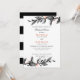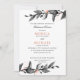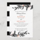 Elegante boda inspirado en la hoja y la flor. Diseño de la cena con delicadas ramas de follaje en negro, rosa gris y corales sobre un fondo blanco. Las tarjetas se revierten a rayas blancas y negras. Un diseño moderno y elegante para los elegantes bodas de moda en cualquier temporada. Coordenadas a la colección de bodas de la Bloom de la Luz de la Luna.