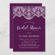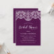 Invite a los huéspedes a su evento con esta invitación a la ducha de personalizable. Cuenta con un elegante jardín de encaje brocado sobre un fondo morado. Personalice agregando sus detalles. Esta invitación a la ducha de novia es perfecta para cualquier tipo de evento o temporada.