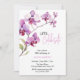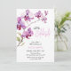 Elegante rama de orquídea morada de acuarela en un marco blanco invitando al cumpleaños. Fácil personalización de los detalles de nombre, edad y evento para satisfacer sus necesidades.