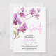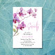 Elegante rama de orquídea morada de acuarela en un marco blanco invitando al cumpleaños. Fácil personalización de los detalles de nombre, edad y evento para satisfacer sus necesidades.