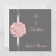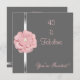 Invitación Fiesta de la celebración del evento de cumpleaños Mid Grey con el Recorte de Plata y Flor de Perla Rosa y Blanca, Fabuloso a los 40.