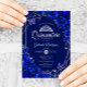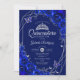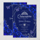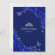 Invitación a la celebración del Quinceanera azul y plata real. Características, letra de guión, mariposas plateadas, rosas de acuarela y tiara. Perfecto para una elegante celebración de glam al estilo de la princesa. Personaliza con tus propios detalles. Invitaciones Zazzle impresas o una plantilla imprimible digital de descarga instantánea.