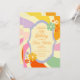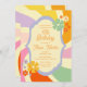 Invitación de cumpleaños de inspiración retro con fuentes y colores de estilo de los años 70.