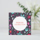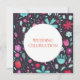 Moderna pintura botánica acuática de flores silvestres azul acuático y violeta sobre un fondo oscuro. Una magnífica invitación cuadrada de coordinación que puedes cambiar para que se adapte a tu propia celebración.
