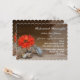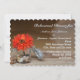 Tarjeta plana de invitación a la cena. Podrá disfrutar de un estilo rústico boda con la flor naranja en el frasco de cristal de Mason. El frasco está parcialmente lleno de pequeñas rocas. La decoración de la jarra de cristal se asienta sobre una mesa rústica de madera. Ideal para cualquier temporada. Personalice esto con su información.