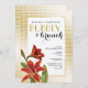 Patrón sofisticado y elegante, negro y dorado de verificación de diamantes (aquí se muestra en el periódico crudo), con una preciosa flor de amarilis roja con hojas de Navidades botánicos. Este diseño casi art decó es ideal para un brunch sofisticado, jubilación, cumpleaños o ocasión de Navidades. Póngase en contacto con el vendedor si necesita ayuda para personalizar sus invitaciones.