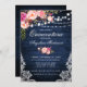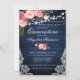 Invitación Flor rosa Rústica Quinceanera Azul