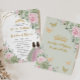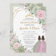 Invitación Flor rosa verde sabio Quinceañera Gemelos mariposa