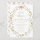 Celebra la alegría de la llegada de tu pequeña con nuestra adorable invitación a la ducha de bebé. Resaltando una encantadora corona floral entrelazada con flores rosas y hojas verdes. Este elegante diseño marca el tono perfecto para una dulce celebración primavera/verano. Ideal para crear un evento elegante y sofisticado, perfecto para dar la bienvenida a su bebé.