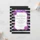 Moderna invitación a la soltería con flores moradas y rosas y rayas negras y blancas. Contáctame, por favor, si necesitas artículos adicionales.