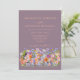Invitación de boda de acuarela de flores silvestres coloridas Bohemian Chic con rsvp en línea y detalles del sitio web y código QR en la parte posterior. Perfecta para un destino al aire libre como un jardín, prado, campo, camping y boda temática de naturaleza en primavera, verano u otoño. Tipografía de guión de tipografía elegante moderna con hermosas flores que incluyen amapola, aciano, margarita, guisante dulce, cosmos, nomeolvides y follaje. La paleta de colores incluye colores pastel azul rosa melocotón púrpura y verde y tonos terrosos naranja marrón y burgundy. Obra de arte original de la artista Catherine Sweetman