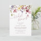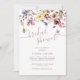 Moderna caligrafía y mauve invitación a la ducha de novia con flores silvestres.