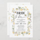 Flor silvestre de marco amarillo que significa ser novia en la invitación a la ducha de flores silvestres y con el tema de las abejas que pretenden ser una invitación a la ducha de novia con un marco floral amarillo y lilac, así como un estilo retro moderno y encabezado de fuentes caligráficas. La invitación a la ducha de bee bridals también incluye dos abejas.