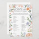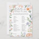 Trae una competencia extra divertida y amigable a tu ducha de novias con este encantador "¿Qué hay en tu bolso?" Juego, diseñado en un bonito estilo floral de otoño. Con sus suaves flores silvestres y sus tonalidades terrenas y románticas, es la adición perfecta a una celebración rústica, otoñal o temática al jardín. A los invitados les encantará escarbar en sus bolsas para anotar puntos para cada día (¡e inesperado!). Ya sea que esté planeando un brunch acogedor o una ducha festiva, esta tarjeta de juegos 5x7 añade un elemento bonito e interactivo al día. Elija la opción de descarga instantánea para imprimirla en casa de inmediato, o seleccione imprimir y enviar para tarjetas de alta calidad y profesionalmente impresas entregadas a su puerta.