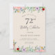 Invitaciones de cumpleaños para adultos | Invitación elegante floral beige rústica para 72 años