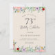 Invitaciones de cumpleaños para adultos | Invitación elegante rústica beige floral para los 73 años