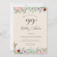 Invitaciones de cumpleaños para adultos | Invitación elegante floral beige rústica para 99 años