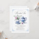 Invite a los huéspedes a una sofisticada celebración con nuestra "Invitación a la ducha de té con flores de tela azul para el marco de tela azul". Este diseño atemporal presenta un delicado set de té estilo toile, acompañado de un jarrón de rosas románticos y flores de ranÚculo, todo ello en elegantes tonos azules y blancos. Un delicado marco de regencia proporciona el fondo. Perfecto para un clásico fiesta de té nupcial o una ducha de temática "Algo Azul", esta invitación combina el encanto de estilo vintage con la moda moderna. Totalmente personalizable, es la manera perfecta de marcar la pauta para un día lleno de amor, risas y elegancia.