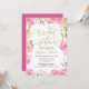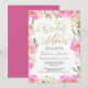 Invitación Flora de ducha de novia caligrafía rosa y dorada
