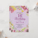 Invitación de 16º cumpleaños para Chica floral. Floral acuarela, fondo morado. Para una mayor personalización, haga clic en el botón "Personalizar" y utilice nuestra herramienta de diseño para modificar esta plantilla.
