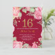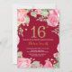 Invitación floral 16º cumpleaños para mujeres. Flor Floral Botánica de acuarela. Brillantina dorada. Fondo Rojo Borgoña. Flores Florales De Peonies Rosados. Cumpleaños de la Chica de Niños Lady. Para una mayor personalización, haga clic en el botón "Personalizar" y utilice nuestra herramienta de diseño para modificar esta plantilla.