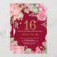 Invitación Floral 16º cumpleaños Purpurina de oro Borgoña Roj