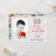 Celebra tu fabuloso cumpleaños número 50 con esta elegante, divertida y personalizada invitación fotográfica de cumpleaños. El diseño es floral, con el texto en color rosa y azul oscuro. Reemplace la foto de ejemplo con la suya propia. El texto puede cambiarse según sus necesidades. La parte delantera y trasera de la tarjeta tienen el mismo motivo floral que el número "50".