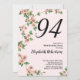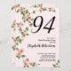 Invitación Floral 94th Birthday Invitation in Blush Pink