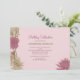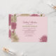 Celebra tu ocasión especial con estilo con esta encantadora invitación floral de cualquier época. El suave fondo rosa tiene sofisticados crisantemos crema y rosas profundos en cascada en el lado izquierdo y una flor en el lado derecho. Bien adaptado para cualquier celebración femenina.La tarjeta es fácil de personalizar con su redacción, fuente, color de fuente y elección de seis tipos de papel.